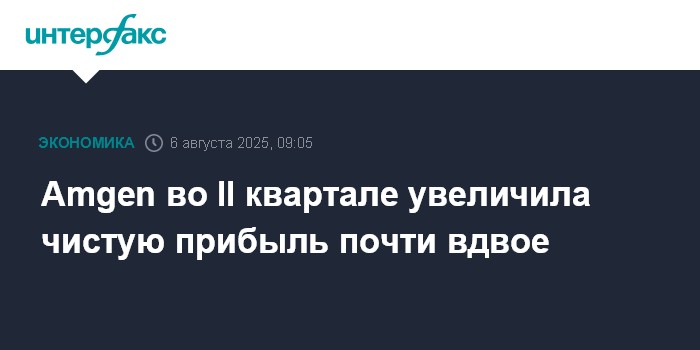 Москва. 6 августа. INTERFAX.RU - Американская биотехнологическая компания Amgen во втором квартале 2025 года увеличила чистую прибыль почти в два раза, выручку - на 9,4%.