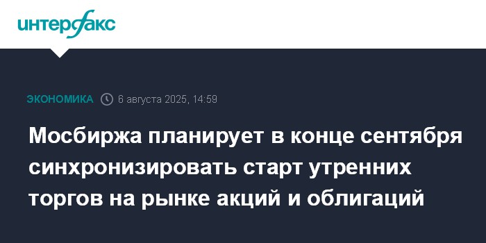 Мосбиржа планирует в конце сентября синхронизировать старт утренних торгов на рынке акций и облигаций