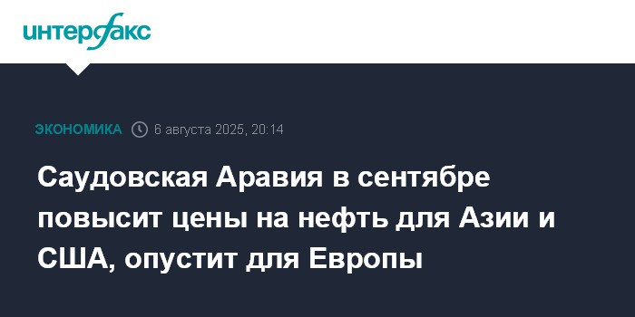 Саудовская Аравия в сентябре повысит цены на нефть для Азии и США, опустит для Европы
