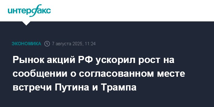 Рынок акций РФ ускорил рост на сообщении о согласованном месте встречи Путина и Трампа