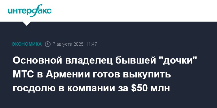 Основной владелец бывшей "дочки" МТС в Армении готов выкупить госдолю в компании за $50 млн