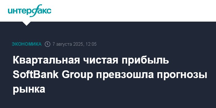 Москва. 7 августа. INTERFAX.RU - Японская SoftBank Group Corp. в первом финансовом квартале получила чистую прибыль, которая оказалась значительно лучше прогноза аналитиков.