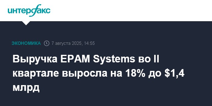 Москва. 7 августа. INTERFAX.RU - Выручка разработчика программного обеспечения EPAM Systems Inc. во II квартале 2025 года выросла на 18% в годовом измерении, до $1,35 млрд, сообщила компания.