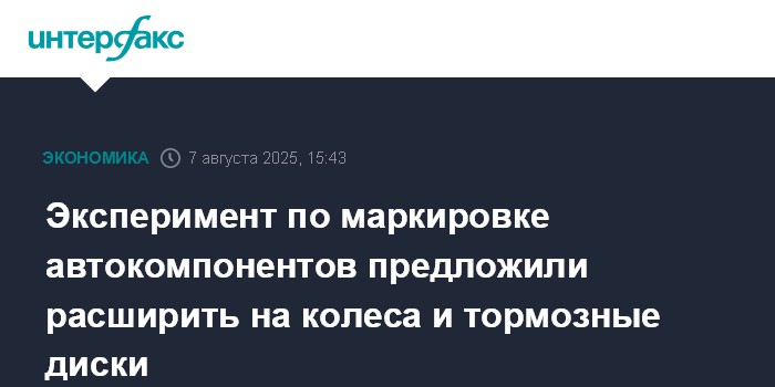 Москва. 7 августа. INTERFAX.RU - Эксперимент по маркировке компонентов транспортных средств и устройств с двигателем внутреннего сгорания планируется расширить, включив в него ходовые колеса, диски, а также тормозные диски и колодки.