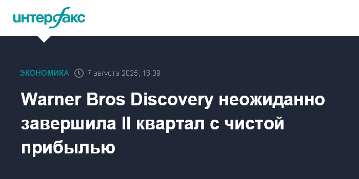 Москва. 7 августа. INTERFAX.RU - Американская медиакомпания Warner Bros. Discovery завершила второй квартал с чистой прибылью, что стало неожиданностью для аналитиков.