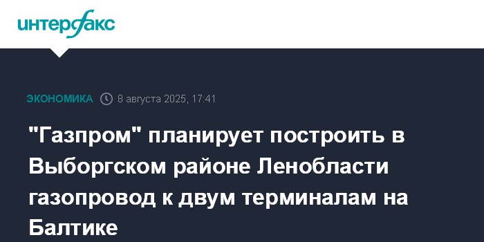 "Газпром" планирует построить в Выборгском районе Ленобласти газопровод к двум терминалам на Балтике