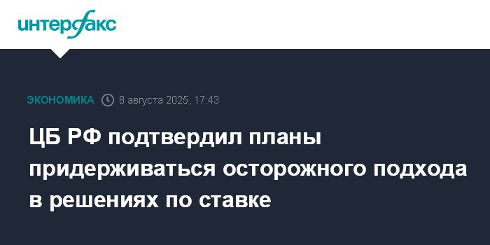 ЦБ РФ подтвердил планы придерживаться осторожного подхода в решениях по ставке