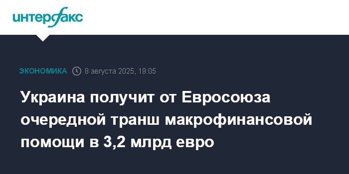 Украина получит от Евросоюза очередной транш макрофинансовой помощи в 3,2 млрд евро