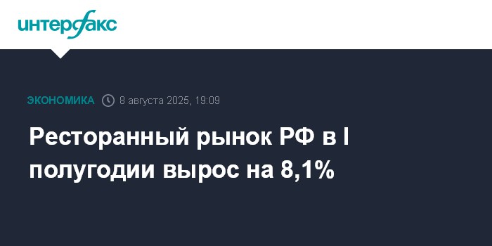 Москва. 8 августа. INTERFAX.RU - Оборот ресторанов, кафе и баров в России в I полугодии 2025 года увеличился на 8,1%, сообщил Росстат в пятницу.