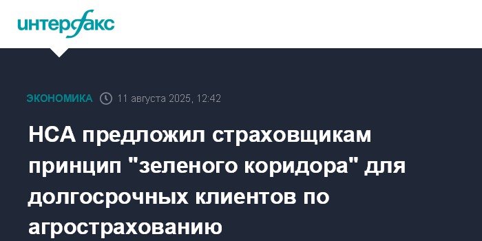 НСА предложил страховщикам принцип "зеленого коридора" для долгосрочных клиентов по агрострахованию