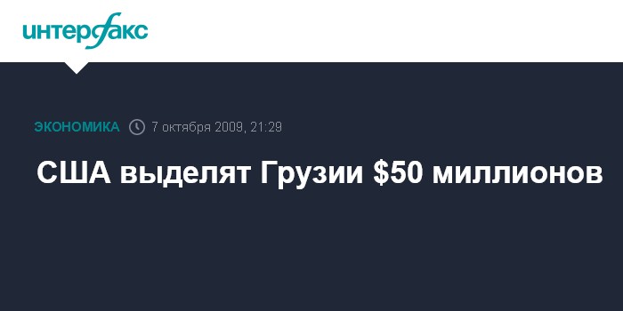 Тбилиси. 7 октября. INTERFAX.RU - Правительство США планирует выделить Грузии 50 млн долларов в рамках обещанной после августовских событий финансовой помощи в объеме 1 млрд долларов.
