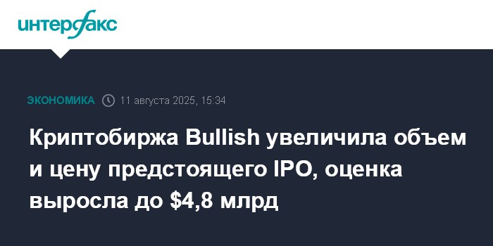 Москва. 11 августа. INTERFAX.RU - Зарегистрированная на Каймановых островах криптовалютная биржа Bullish увеличила объем и цену предстоящего IPO на Нью-Йоркской фондовой бирже (SEC).