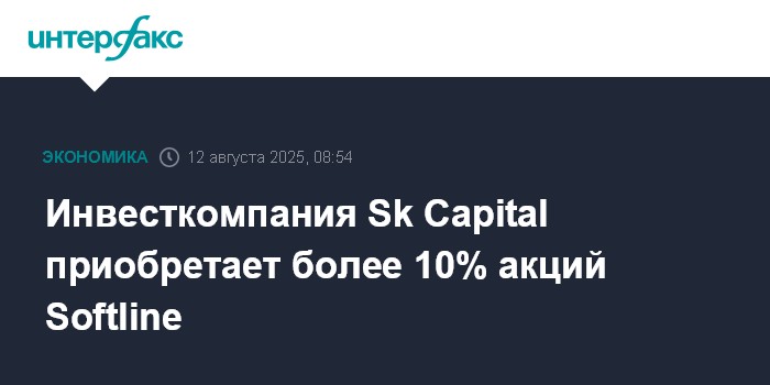 Москва. 12 августа. INTERFAX.RU - Инвесткомпания Sk Capital, входящая в ВЭБ.РФ, становится владельцем более 10% акций ГК Softline, говорится в сообщении группы.