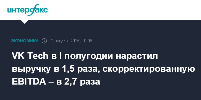 VK Tech в I полугодии нарастил выручку в 1,5 раза, скорректированную EBITDA – в 2,7 раза