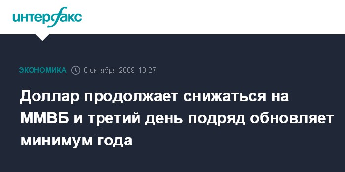 Москва. 8 октября. INTERFAX.RU – Доллар снизился в первые минуты торгов четверга на ММВБ, третий день подряд обновляя минимум с начала дола. Рубль незначительно укрепился к бивалютной корзине, ЦБ РФ ограничивал в первые минуты снижение корзины на отметке 36 рублей.