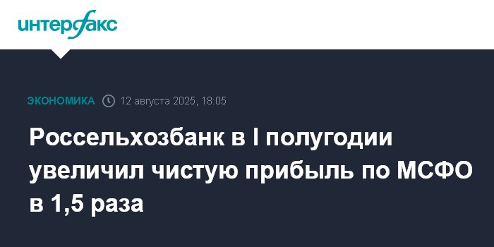 Москва. 12 августа. INTERFAX.RU - Россельхозбанк (РСХБ) в первом полугодии 2025 года увеличил чистую прибыль по МСФО до рекордных 39,54 млрд рублей, что более чем в 1,5 раза выше показателя за аналогичный период прошлого года (26,03 млрд руб.), следует из отчетности банка.
