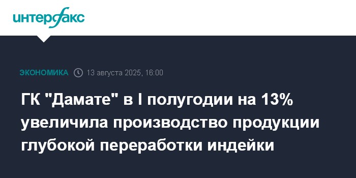 Компания напоминает, что в своей работе делает ставку на развитие производства продукции глубокой переработки из индейки с высокой добавленной стоимостью. В 2024 году выпуск этой продукции вырос на 25% до 26 тыс. тонн, в результате "Дамате" вошла в топ-20 производителей колбасных изделий в РФ.