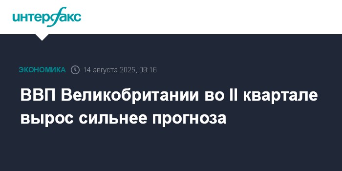 Москва. 14 августа. INTERFAX.RU - Экономика Великобритании во втором квартале 2025 года выросла на 0,3% по сравнению с предыдущими тремя месяцами, по предварительным данным Национального статистического управления (ONS).