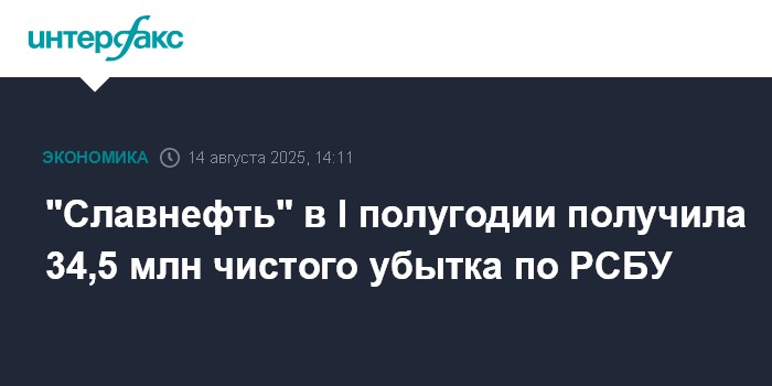 Москва. 14 августа. INTERFAX.RU - Головная компания "Славнефти" (на паритетной основе принадлежит "Роснефти" и "Газпром нефти") по итогам января-июня получила 34,51 млн чистого убытка по РСБУ, сообщается в ее отчете.