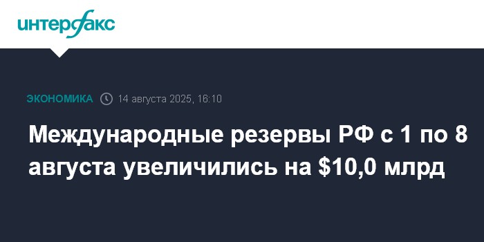Международные резервы РФ с 1 по 8 августа увеличились на $10,0 млрд