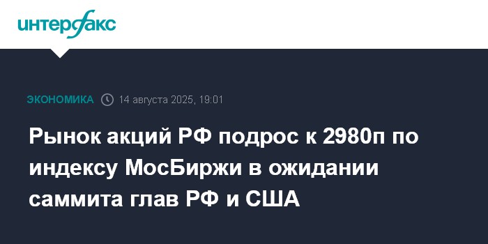 Рынок акций РФ подрос к 2980п по индексу МосБиржи в ожидании саммита глав РФ и США