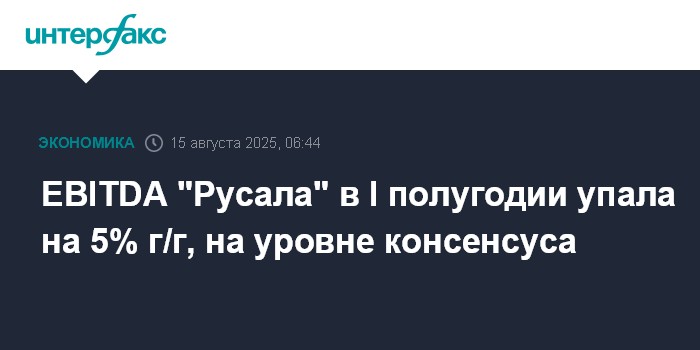 Москва. 15 августа. INTERFAX.RU - Скорректированная EBITDA "Русала" в первом полугодии 2025 года составила $748 млн, что на 5% ниже уровня годичной давности, сообщила компания в пятницу.