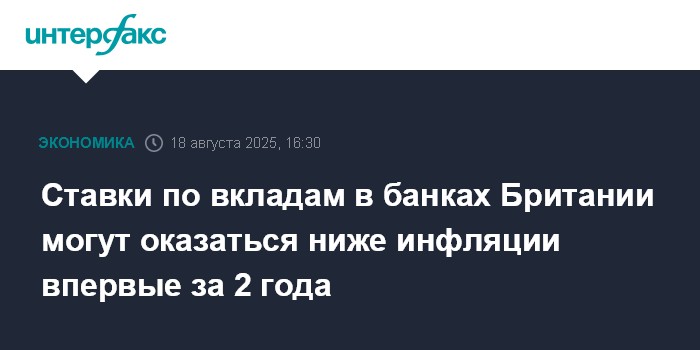 Ставки по вкладам в банках Британии могут оказаться ниже инфляции впервые за 2 года