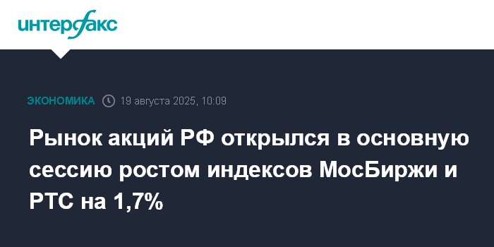 Рынок акций РФ открылся в основную сессию ростом индексов МосБиржи и РТС на 1,7%
