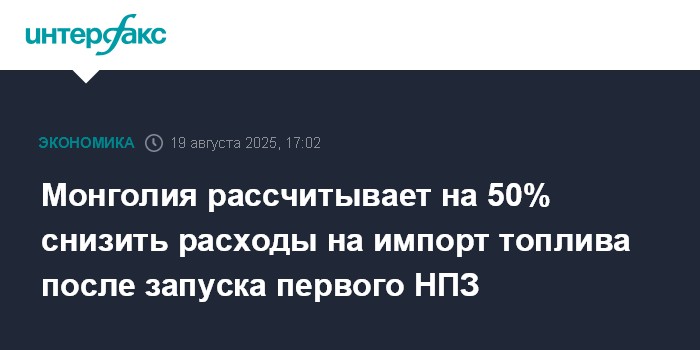 Москва. 19 августа. INTERFAX.RU - Власти Монголии планируют направлять на инвестиции в социально-экономические сферы средства, которые могут быть сэкономлены на импорте нефтепродуктов из-за рубежа после ввода в эксплуатацию первого в республике нефтеперерабатывающего завода, сообщает государственное информагентство "Монцамэ".