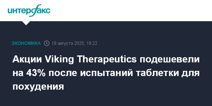 Москва. 19 августа. INTERFAX.RU - Котировки биотехнологической компании Viking Therapeutics обвалились во вторник после публикации данных промежуточных испытаний препарата для снижения веса, которые не оправдали ожиданий инвесторов.