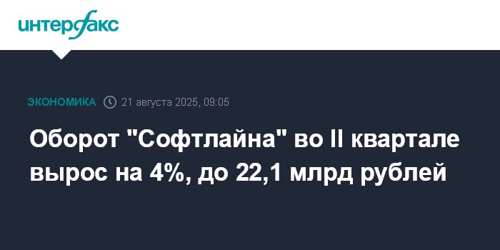 Москва. 21 августа. INTERFAX.RU - Оборот ПАО "Софтлайн" во II квартале 2025 года составил 22,1 млрд рублей, что на 4% больше, чем за аналогичный период 2024 года, сообщила компания.