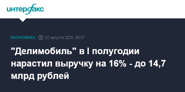 Москва. 22 августа. INTERFAX.RU - ПАО "Каршеринг Руссия" (бренд "Делимобиль") в I полугодии 2025 года нарастило выручку на 16% - до 14,68 млрд рублей, сообщила компания.