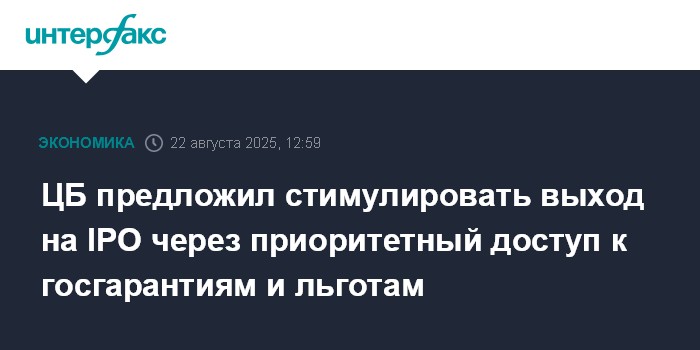 ЦБ предложил стимулировать выход на IPO через приоритетный доступ к госгарантиям и льготам