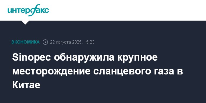 Москва. 22 августа. INTERFAX.RU - Китайская нефтегазовая компания Sinopec объявила об обнаружении месторождения сланцевого газа, разведенные запасы которого превышают 146 млрд кубометров, сообщает "Синьхуа".