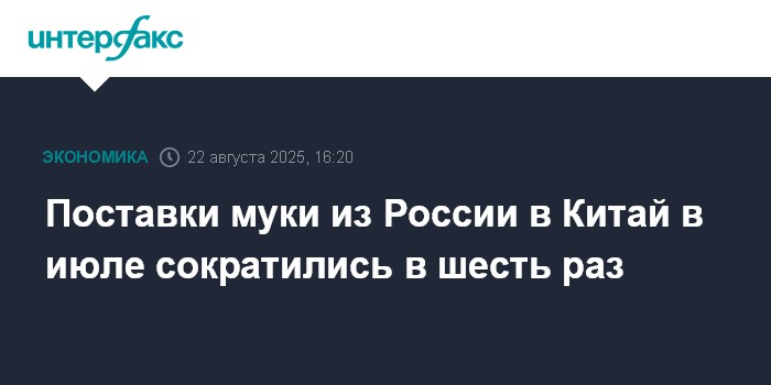 Поставки муки из России в Китай в июле сократились в шесть раз