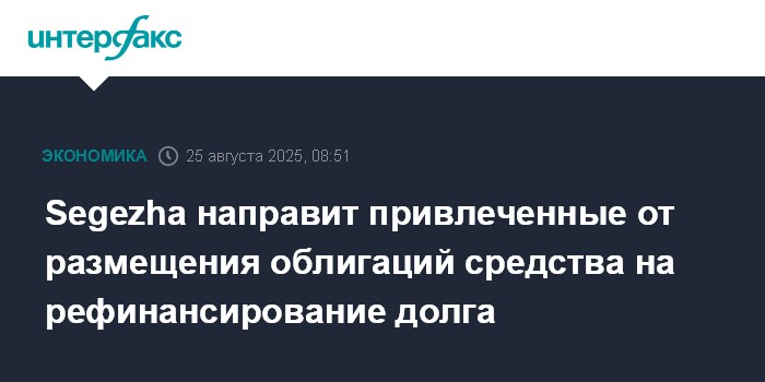 Москва. 25 августа. INTERFAX.RU - Основной целью размещения последних выпусков облигаций Segezha Group в рублях и юанях является рефинансирование текущей задолженности, сообщил новый член правления - вице-президент по финансам и инвестициям холдинга Дмитрий Муз.