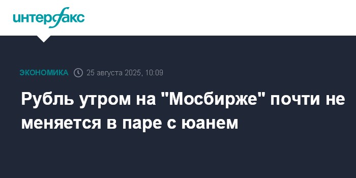 Москва. 25 августа. INTERFAX.RU - Утром в понедельник на "Московской бирже" рубль слегка дешевеет к юаню на фоне небольшого роста котировок нефти.