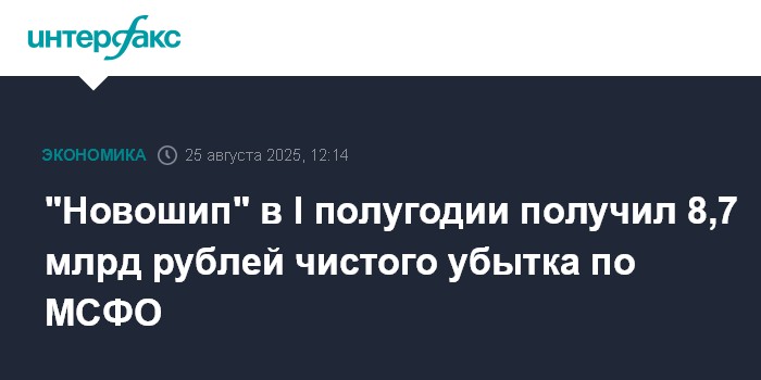 Москва. 25 августа. INTERFAX.RU - ПАО "Новороссийское морское пароходство" ("Новошип", входит в группу "Совкомфлот") в январе-июне 2025 года получило 8,7 млрд рублей чистого убытка по МСФО против 3,98 млрд рублей чистой прибыли за аналогичный период прошлого года, говорится в консолидированной отчетности компании.
