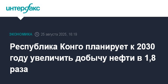 Москва. 25 августа. INTERFAX.RU - Республика Конго к 2030 году планирует увеличить добычу нефти до 500 тысяч баррелей в сутки, сообщает конголезское информационное агентство со ссылкой на министра углеводородов страны Бруно Жана Ришара Итуа.