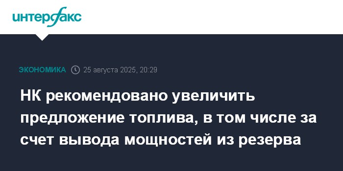НК рекомендовано увеличить предложение топлива, в том числе за счет вывода мощностей из резерва