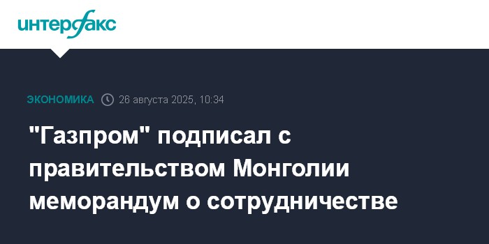 "Газпром" подписал с правительством Монголии меморандум о сотрудничестве