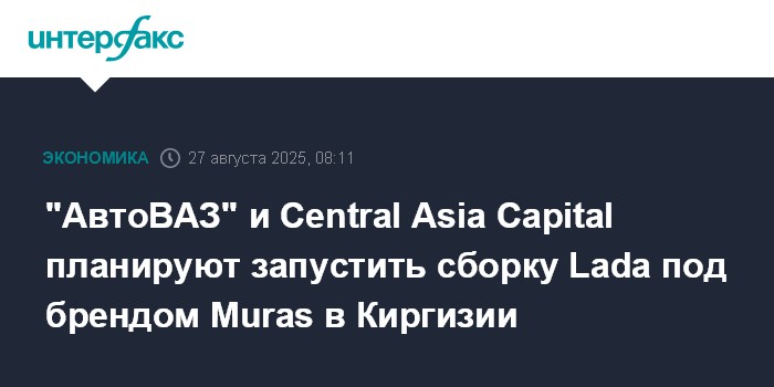 Москва. 26 августа. INTERFAX.RU - Инвестиционный фонд Central Asia Capital планирует запустить в Киргизии автозавод по сборке Lada под брендом Muras в технологическом партнерстве с "АвтоВАЗом", говорится в сообщении фонда.