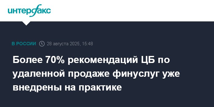Более 70% рекомендаций ЦБ по удаленной продаже финуслуг уже внедрены на практике