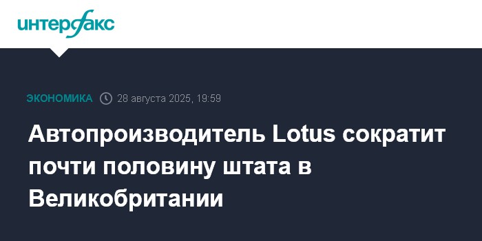 Москва. 28 августа. INTERFAX.RU - Производитель спортивных автомобилей Lotus планирует уволить примерно 550 сотрудников в Великобритании на фоне сокращения продаж и негативного влияния американских пошлин.