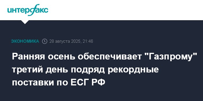 Ранняя осень обеспечивает "Газпрому" третий день подряд рекордные поставки по ЕСГ РФ
