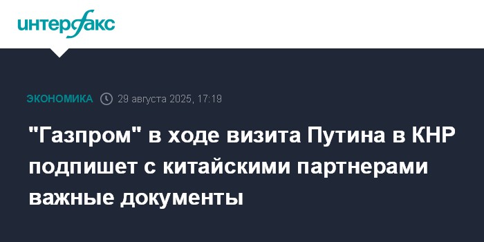 Москва. 29 августа. INTERFAX.RU - "Газпром" в ходе визита президента РФ Владимира Путина в КНР планирует подписать с китайскими партнерами важные документы, сообщил помощник российского лидера Юрий Ушаков .