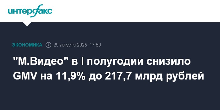 "М.Видео" в I полугодии снизило GMV на 11,9% до 217,7 млрд рублей