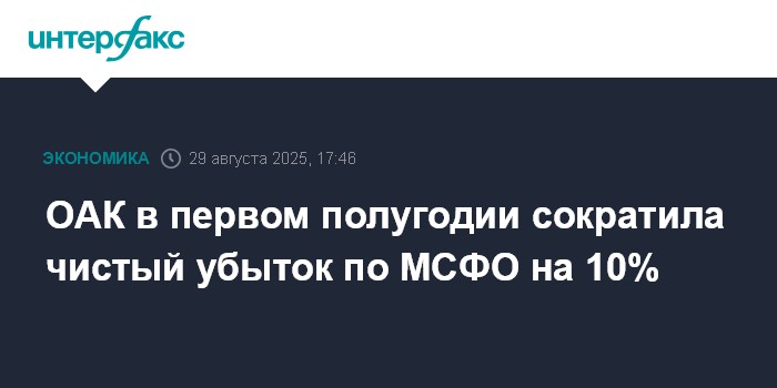 Москва. 29 августа. INTERFAX.RU - Чистый убыток ПАО "Объединенная авиастроительная корпорация" (ОАК) по МСФО в первом полугодии 2025 года сократился на 10%, до 15,9 млрд рублей, говорится в отчете группы.