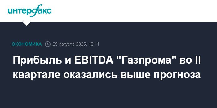 Заместитель председателя правления "Газпрома" Фамил Садыгов отметил, что за апрель-июнь 2025 года EBITDA выросла на 28% относительно аналогичного периода 2024 года - в том числе, благодаря снижению операционных расходов.