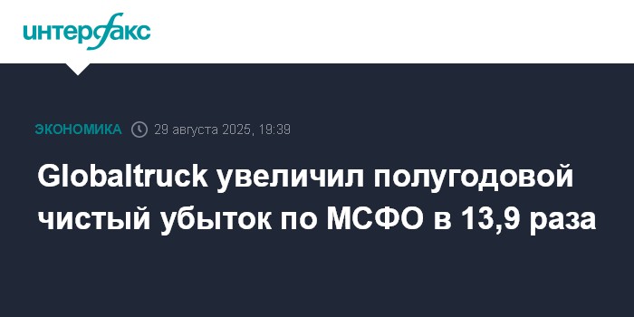 Москва. 29 августа. INTERFAX.RU - Чистый убыток автомобильного грузоперевозчика Globaltruck по МСФО в I полугодии 2025 года вырос в 13,9 раза, до 1,2 млрд рублей, говорится в отчетности группы.